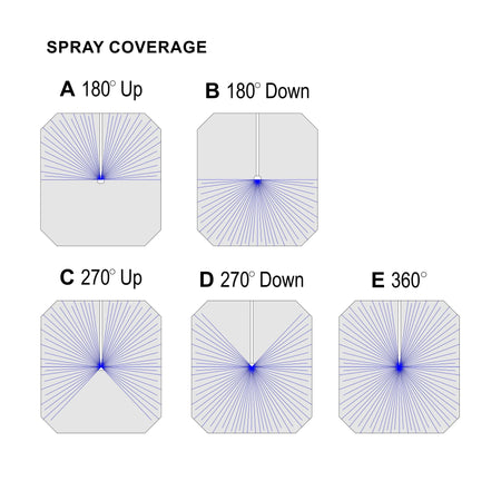 - Spray angles range from 180° to 360° and can be used to clean specific areas or the entire tank interior.