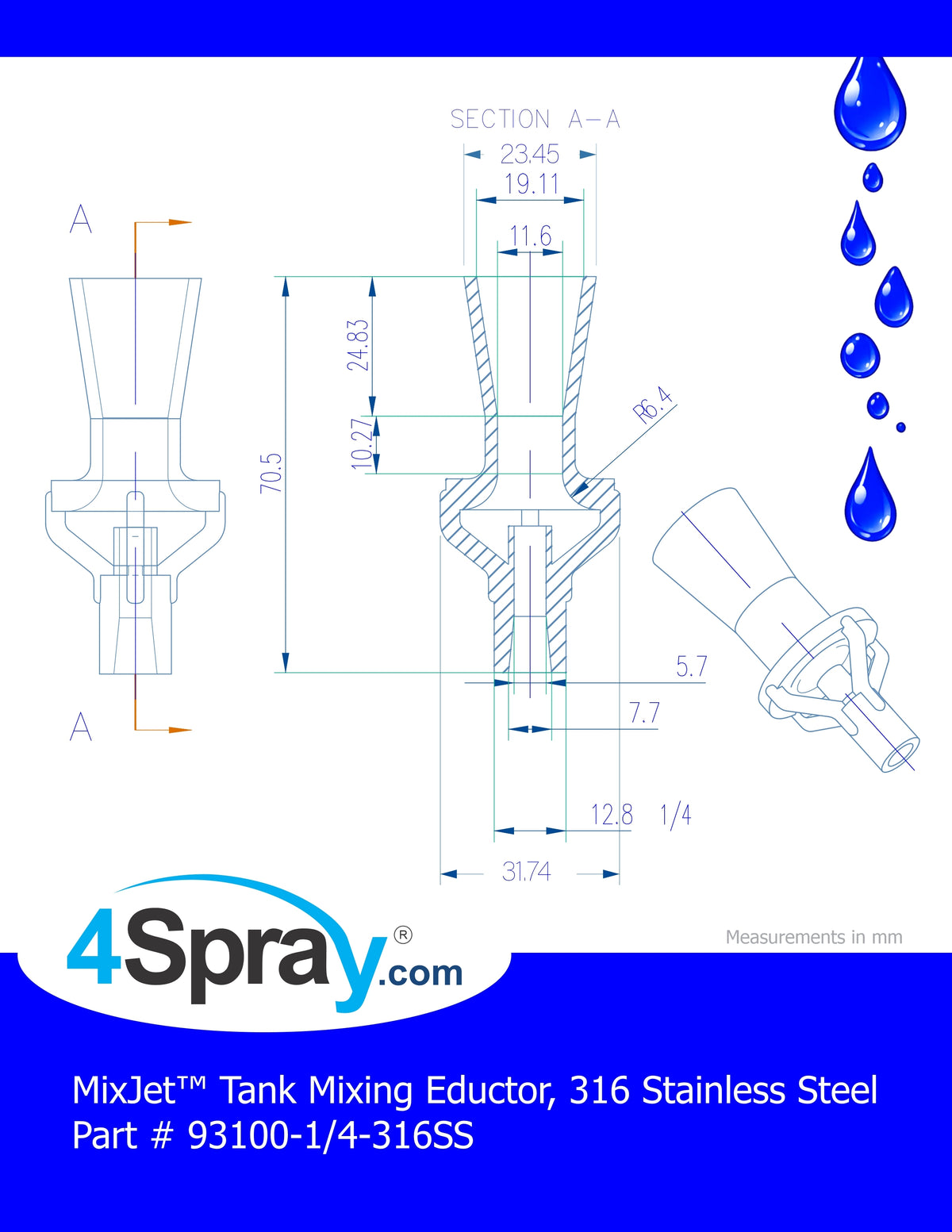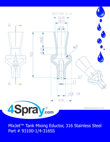 MixJet™ Tank Mixing Eductor, 316 Stainless Steel, 93100-1/4-316SS